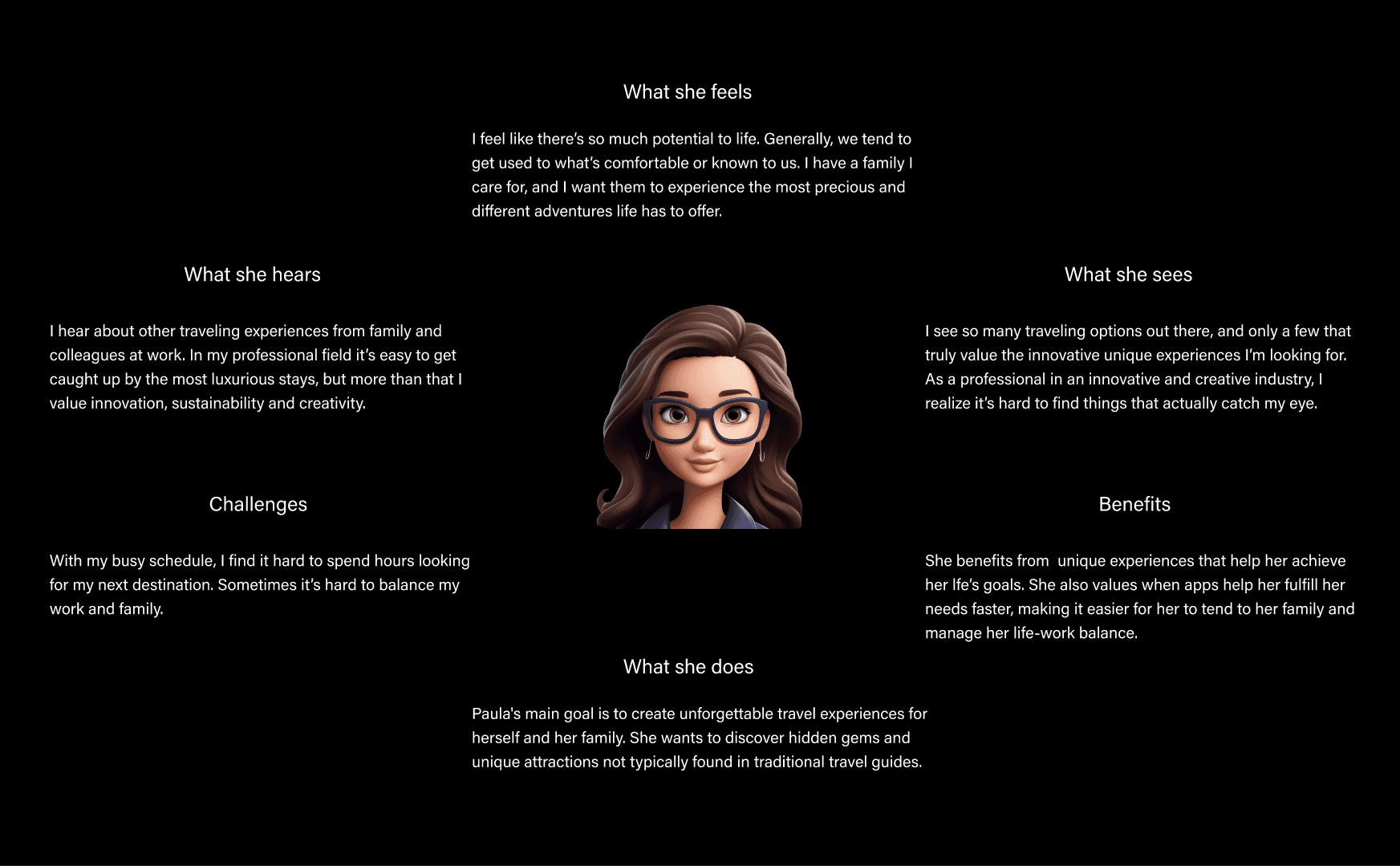 User Analysis: Crafted a user persona who values innovation and unconventional experiences. I further explored their